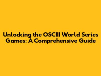 Decoding the OSCIII World Series: What's It All About?