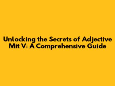 Tips and Tricks for Mastering Adjective Mit V