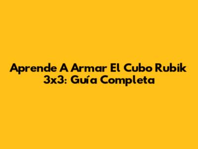 Aprende A Armar El Cubo Rubik 3x3: Guía Completa