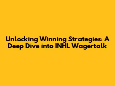 Strategies and Tips for Maximizing Your INHL Wagertalk Experience