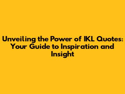The Transformative Potential of IKL Quotes: How They Can Shape Your World