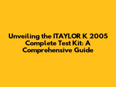 Hey guys! Let's dive deep into something that might sound a little technical at first: the ITAYLOR K 2005 Complete Test Kit. Now, I know what you might be thinking – test kits? Sounds boring! But trust me, this one is pretty interesting, especially if you're into [repair-input-keyword]. This guide is designed to break down everything you need to know about this kit, from what it is, what it does, and why it might be super useful for you. We'll explore its components, applications, and even a bit about where you can snag one. So, buckle up, and let's get started on this journey to understanding the ITAYLOR K 2005 Complete Test Kit!