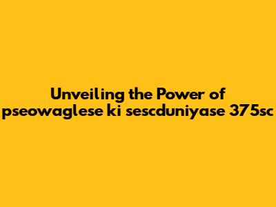Demystifying pseowaglese ki sescduniyase 375sc: The Basics