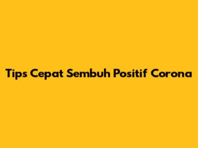 Tips Cepat Sembuh Positif Corona